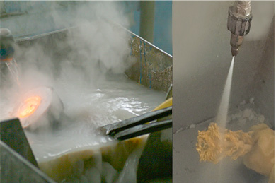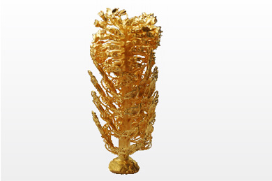 • 沖洗掉石膏,取出澆鑄好的黃金毛胚件“金樹”