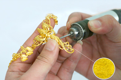 • 然后用粗細不同的砂紙進一步對黃金產品表